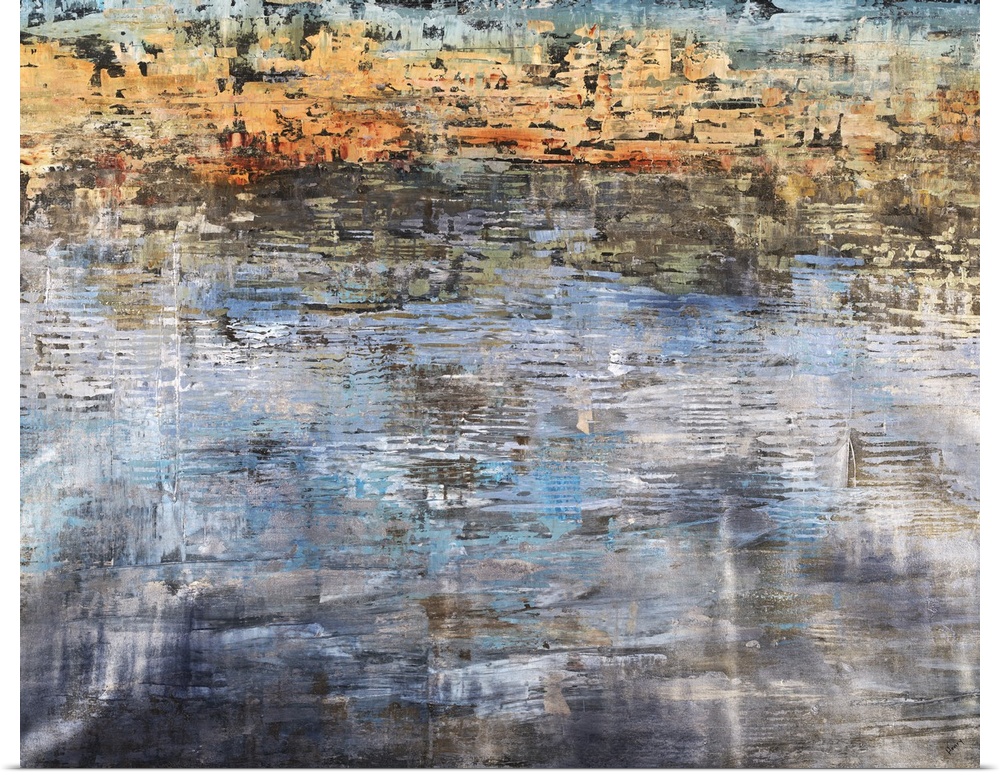 <p>Contemporary abstract painting using dark colors and decayed looking textures.</p>