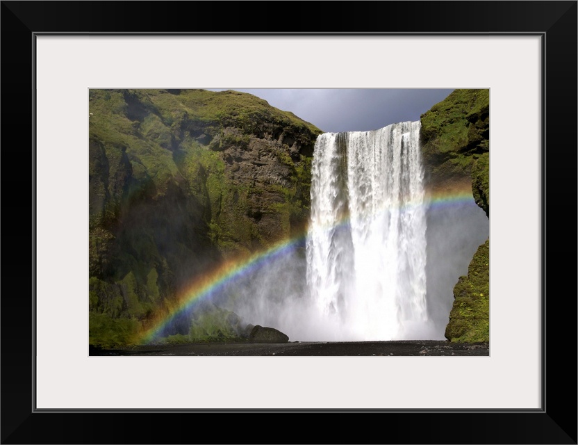 <p>Skogafoss waterfall with rainbow in summer sunshine, South coast, Iceland, Polar Regions</p>