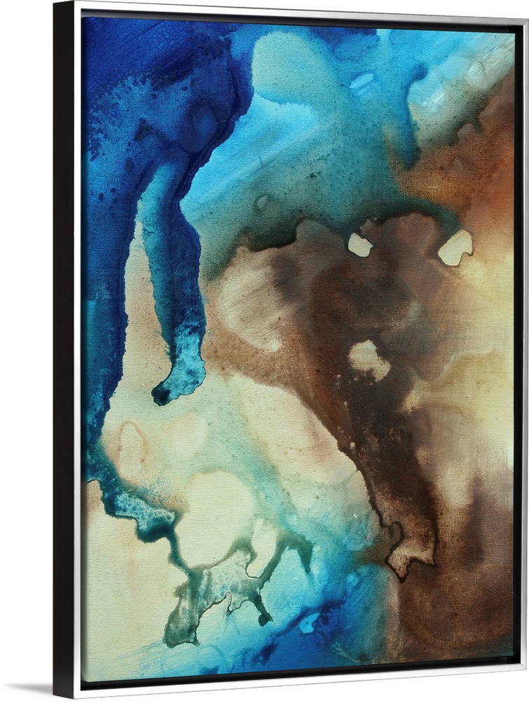 <p>Contemporary abstract painting with fluid colors blended together to create drama and boldness. There are areas when the paint seems to have dripped down the canvas.</p>