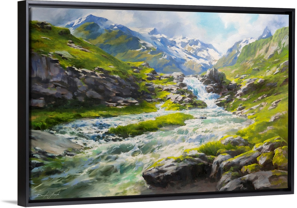 Art Contemporary Art Green Wall Art Landscapes Mountains Waterfall Painting Dimitri Sirenko