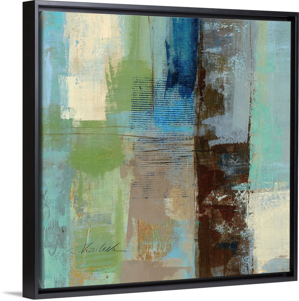 <p>Abstract painting with different cool toned strokes and splotches.</p>