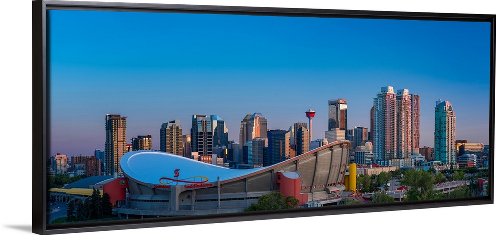 <p>Skyline and Scotiabank Saddledome, Calgary, Alberta, Canada.</p>