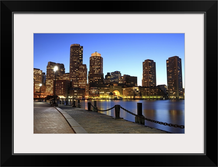 <p>Boston Harbor and skyline. Boston is one of the oldest cities in the United States and largest city in new England. It has been the scene of major events in US history including the Boston Tea Party</p>