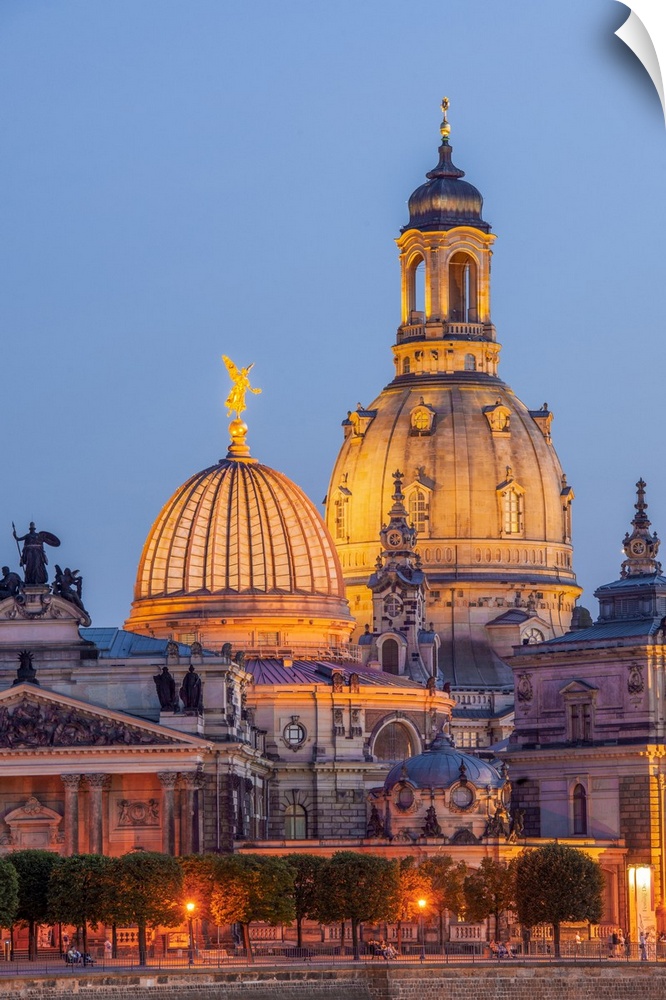 <p>Skyline of Dresden at dusk with Bruehl's Terrace ,Academy of Fine Arts, Church of Our Lady, Dresden, Saxony, Germany.</p>