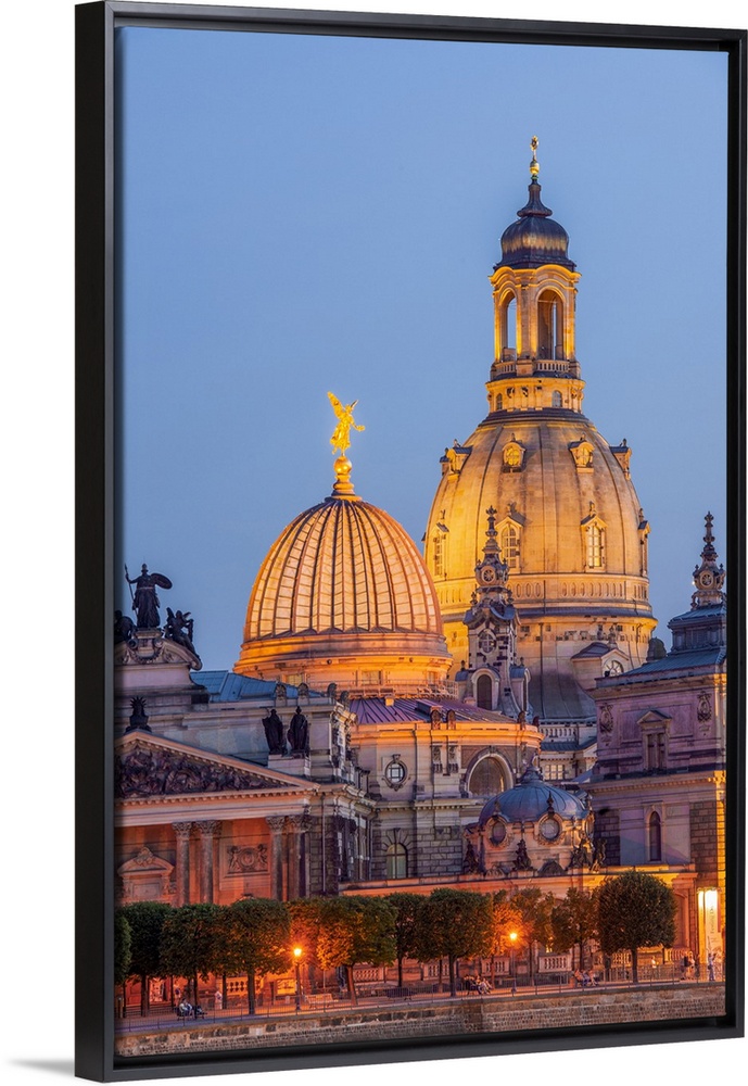 <p>Skyline of Dresden at dusk with Bruehl's Terrace ,Academy of Fine Arts, Church of Our Lady, Dresden, Saxony, Germany.</p>