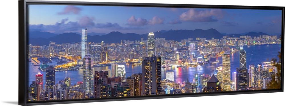 <p>Skyline of Hong Kong Island and Kowloon at dusk, Hong Kong</p>