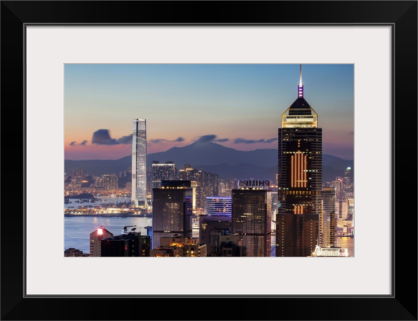 <p>Skyline of Hong Kong Island and Kowloon at sunset, Hong Kong</p>