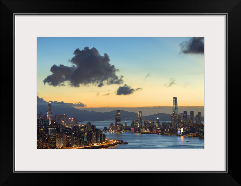 <p>Skyline of Hong Kong Island and Kowloon at sunset, Hong Kong</p>
