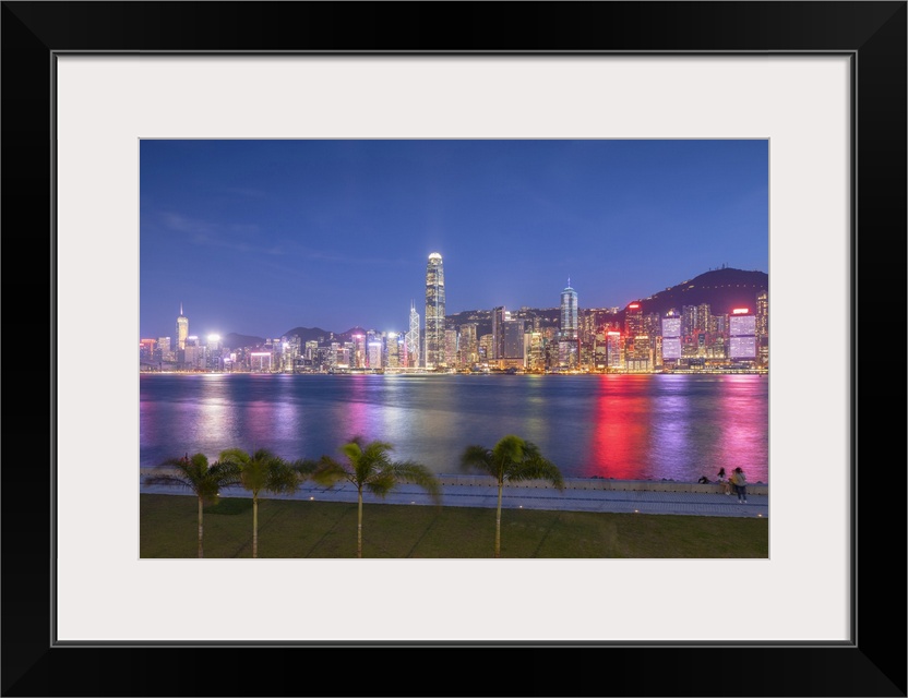 <p>Skyline of Hong Kong Island at dusk from West Kowloon Art Park, Kowloon, Hong Kong</p>