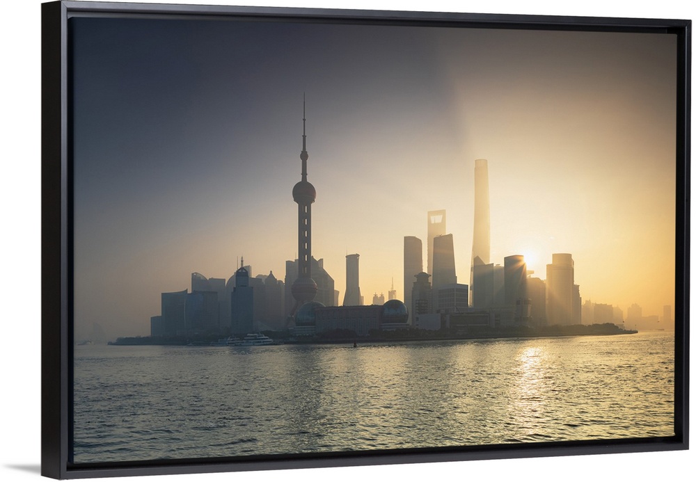 <p>Skyline of Pudong at sunrise, Shanghai, China, Asia</p>