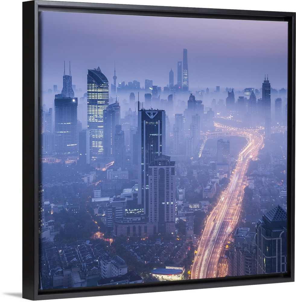 <p>Skyline of Shanghai from Jing'An on a foggy November morning, China.</p>