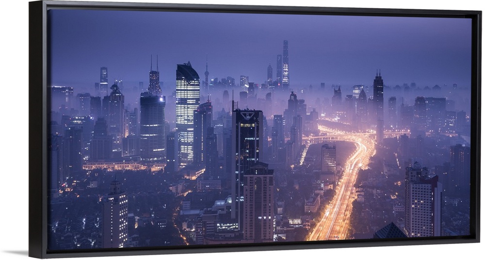 <p>Skyline of Shanghai from Jing'An on a foggy November morning, China.</p>