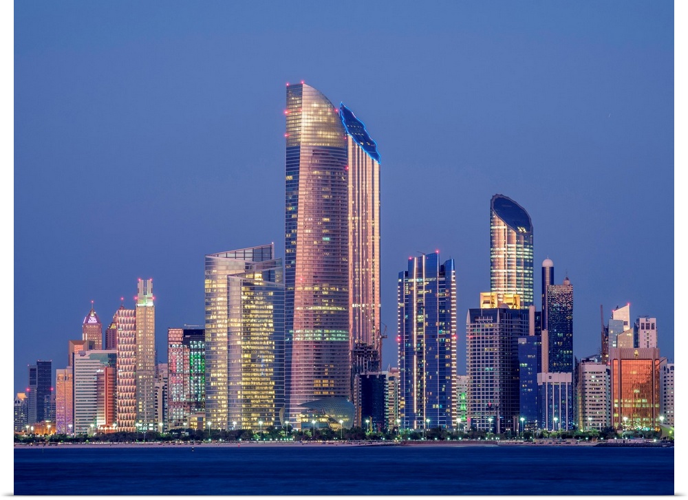 <p>Skyline Of The City Center At Twilight, Abu Dhabi, United Arab Emirates</p>