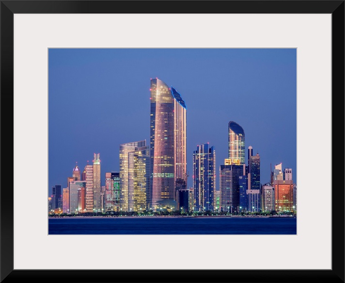 <p>Skyline Of The City Center At Twilight, Abu Dhabi, United Arab Emirates</p>