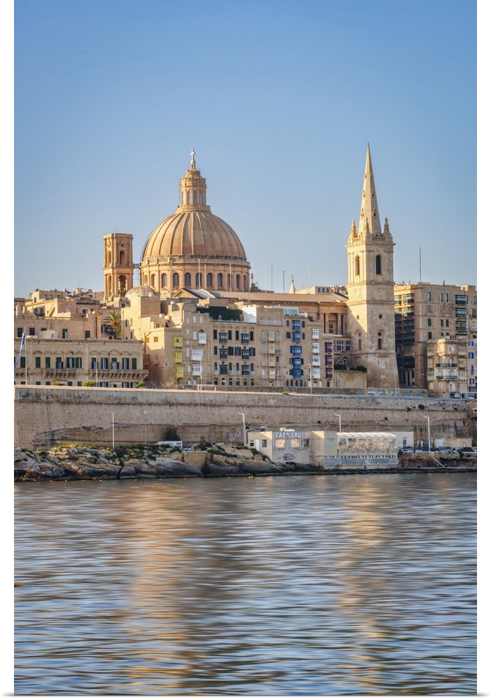 <p>Skyline with Basilica of our Lady of Mount Carmel Dome and St.Pauls Anglican Cathedral Spire, Valletta, Malta.</p>