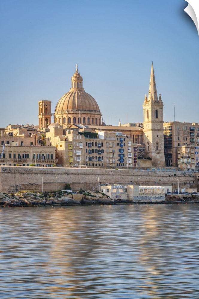 <p>Skyline with Basilica of our Lady of Mount Carmel Dome and St.Pauls Anglican Cathedral Spire, Valletta, Malta.</p>