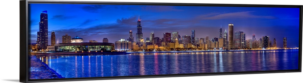 <p>Skylines at the waterfront at dusk, Chicago, Cook County, Illinois, USA.</p>