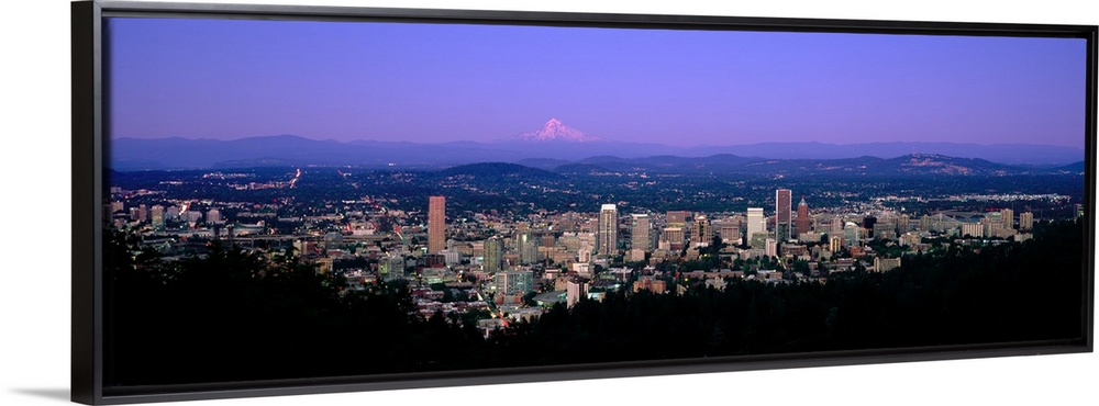 <p>Skylines in a city with mt hood in the background, portland, oregon, USA.</p>