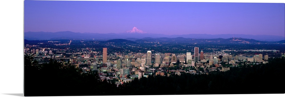 <p>Skylines in a city with mt hood in the background, portland, oregon, USA.</p>