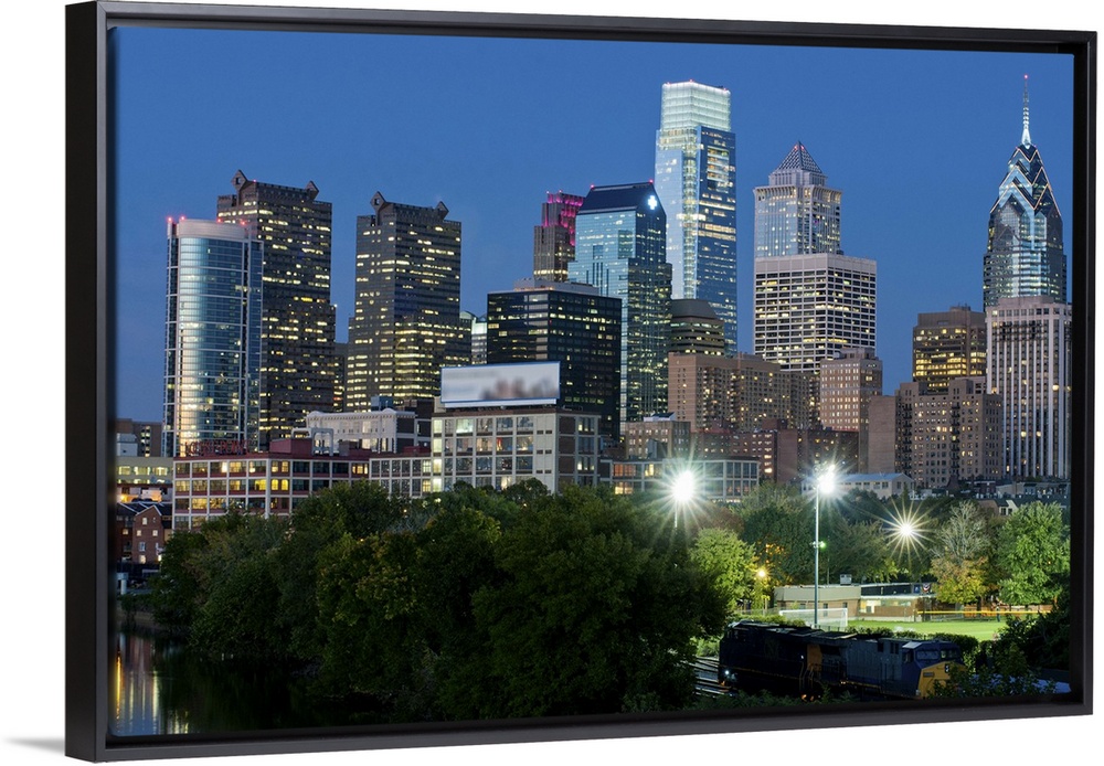 <p>Skyscrapers in a city at dusk, Philadelphia, Pennsylvania, USA</p>