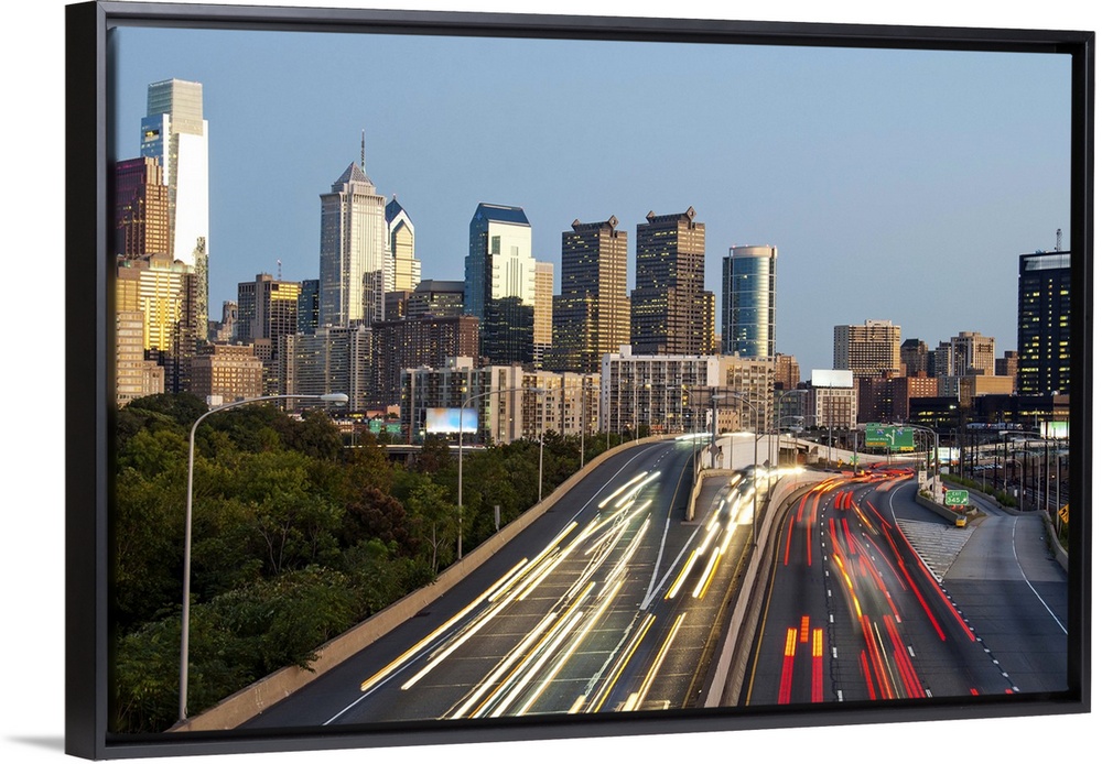 <p>Skyscrapers in a city at dusk, Philadelphia, Pennsylvania, USA</p>