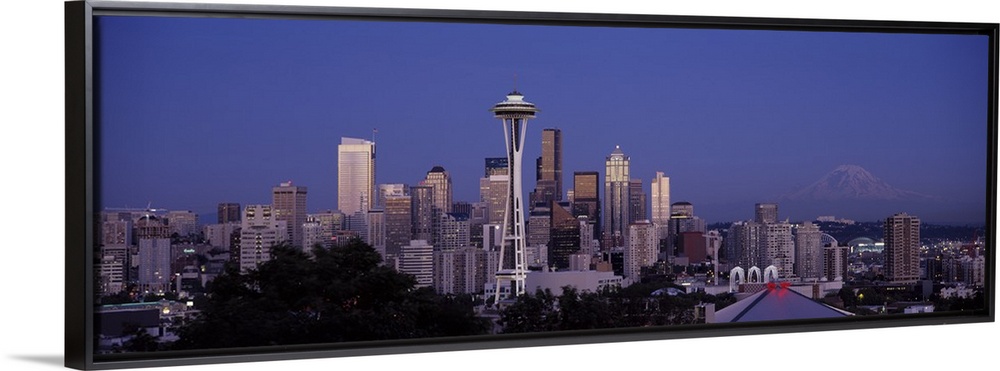 <p>A panoramic view of the Seattle skyline with the space needle focused in the middle.</p>