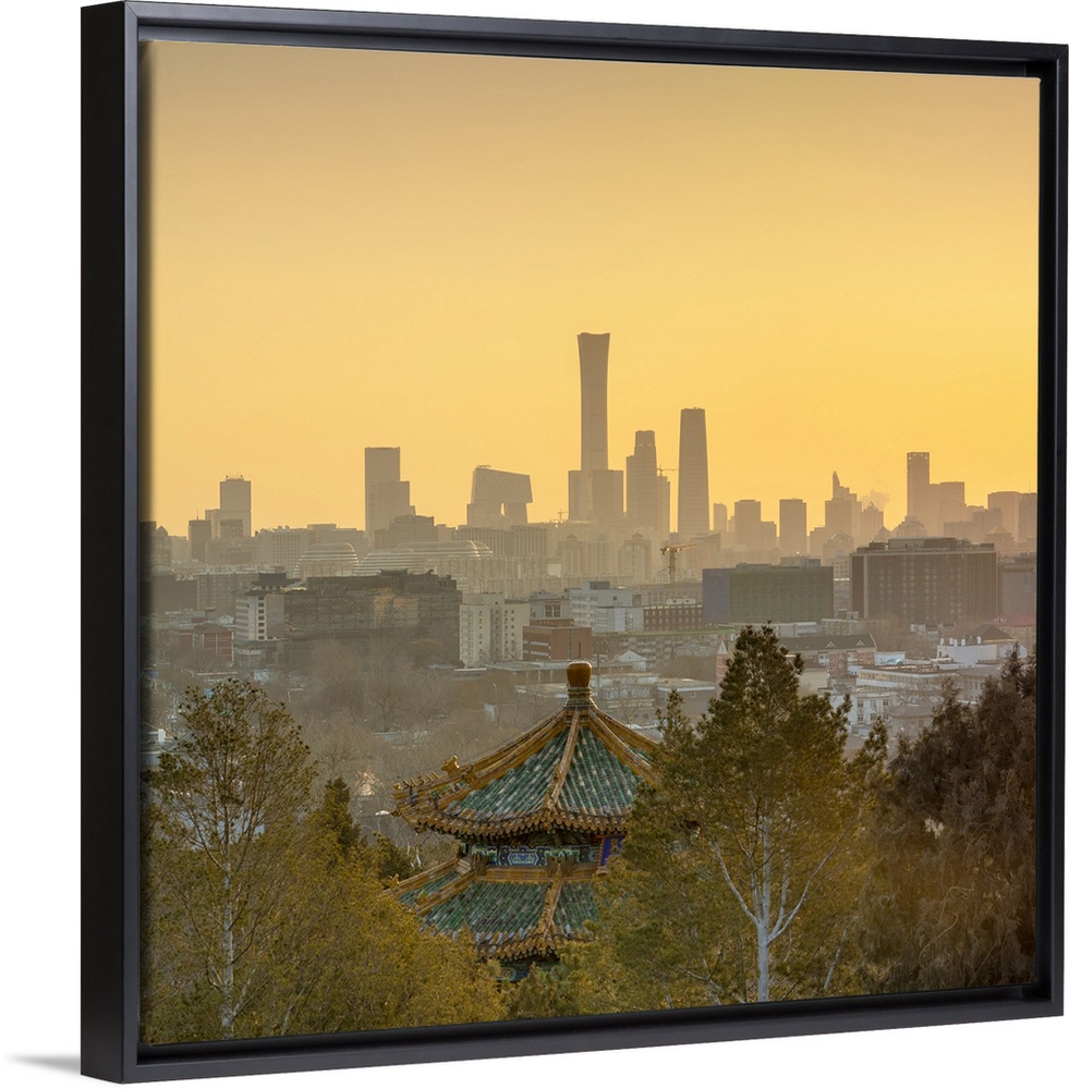 <p>Skyscrapers of Chaoyang business district from Jingshan Park at sunrise, Beijing, China</p>