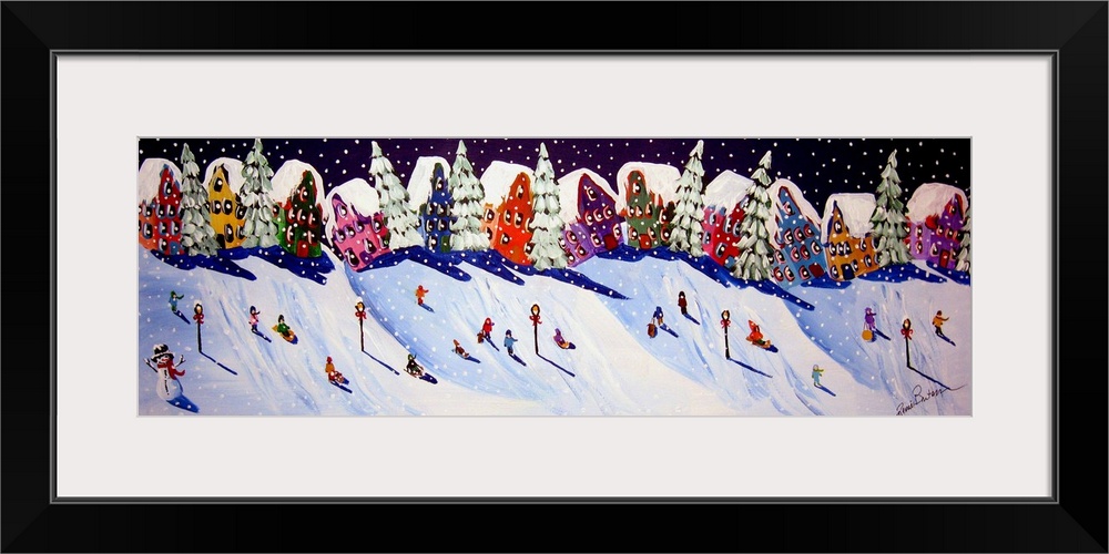 <p>Children enjoying the new snow, sled riding down the neighborhood hills.</p>