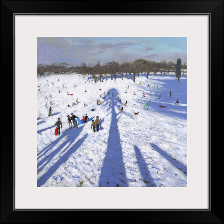 <p>Sledging, Wollaton Park, 2017. Originally oil on canvas.</p>