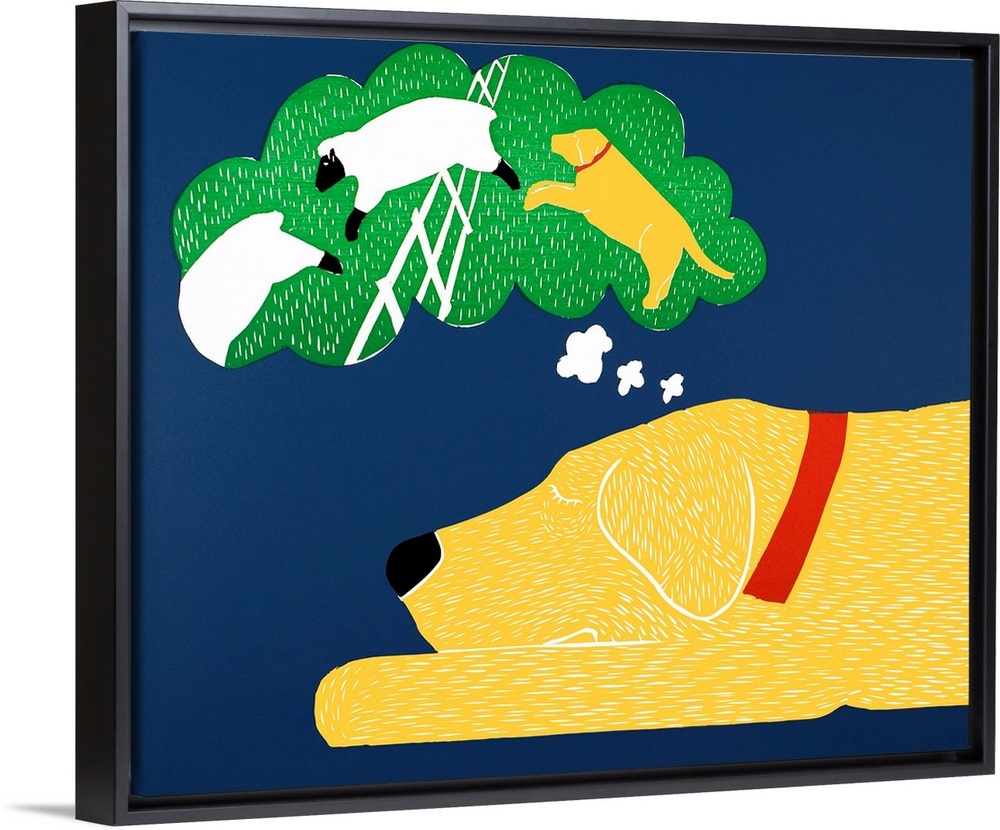 <p>Illustration of a yellow lab taking a nap and dreaming of herding sheep.</p>
