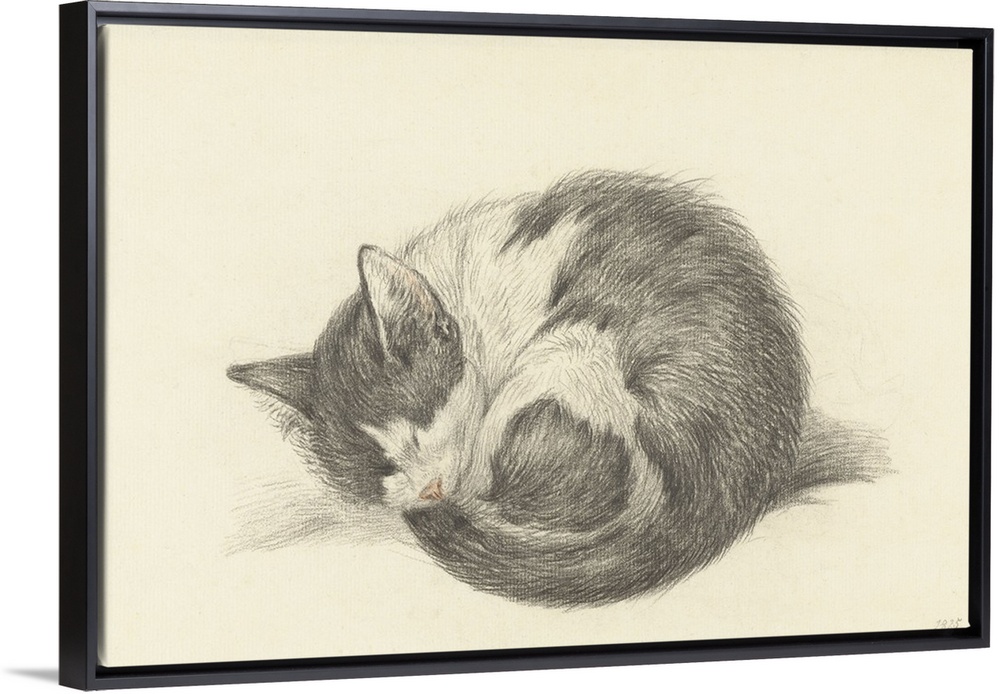 <p>Sleeping Cat Rolled into a Ball, by Jean Bernard, 1825, Dutch chalk drawing.</p>