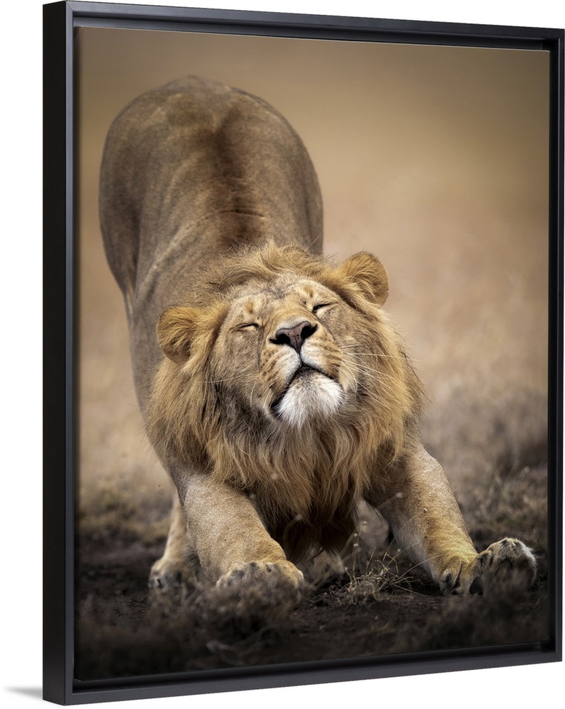 <p>Sleepy male lion stretching in the Masai Mara, Kenya, East Africa, Africa</p>