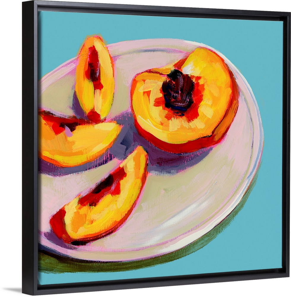 Art Kitchen Wall Art Blue Wall Art Contemporary Art Food and Drink Food Fruit Peach Painting Still Life