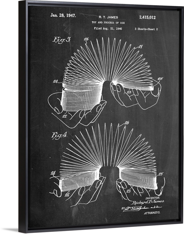 <p>Black and white diagram showing the parts of a slinky toy.</p>