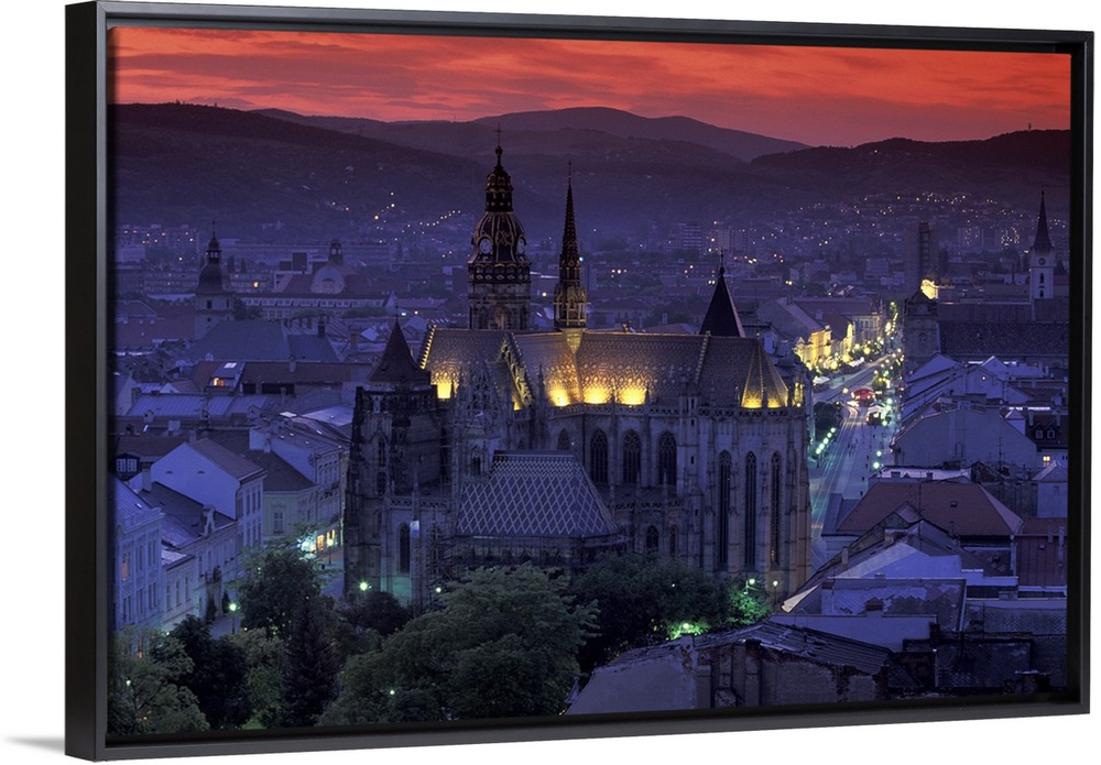 <p>Europe, Slovakia, Kosice. Cathedral of St. Elizabeth and town view at dusk</p>