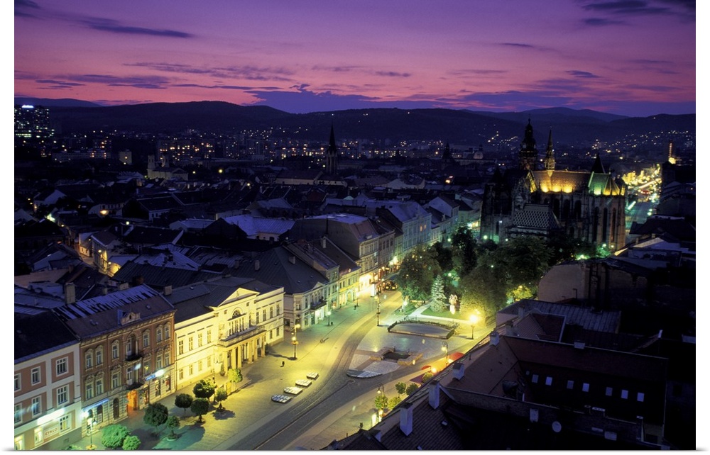 <p>Europe, Slovakia, Kosice. Cathedral of St. Elizabeth and town view at dusk</p>