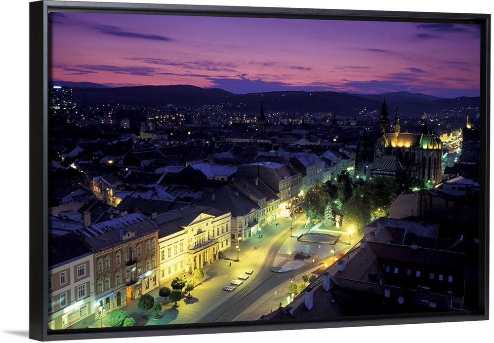 <p>Europe, Slovakia, Kosice. Cathedral of St. Elizabeth and town view at dusk</p>