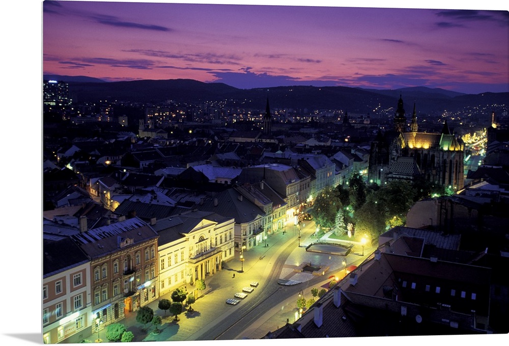 <p>Europe, Slovakia, Kosice. Cathedral of St. Elizabeth and town view at dusk</p>