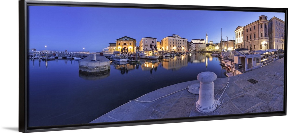 <p>Europe, Slovenia, Istria, Piran. The picturesque port and the buildings around it at dusk</p>