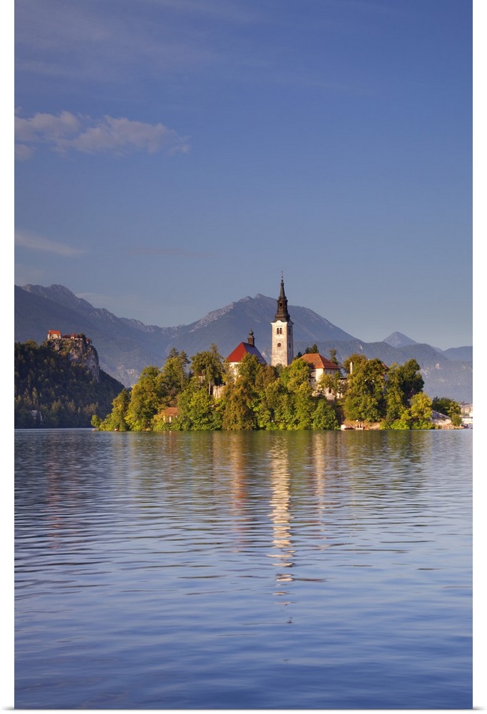 <p>Slovenia, Julian Alps, Upper Carniola, Lake Bled. Island with church on Lake Bled.</p>