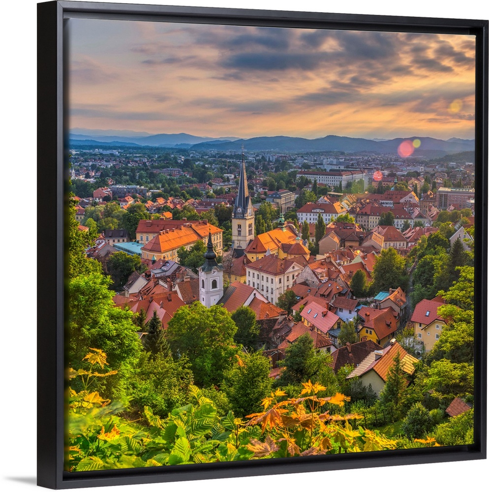 <p>Slovenia, Ljubljana, Sveti Florijana (or Sentflorjanska) Cerkev and Sveti Jakoba Cerkev beyond (Saint Florian and Saint Jakob Churches)</p>