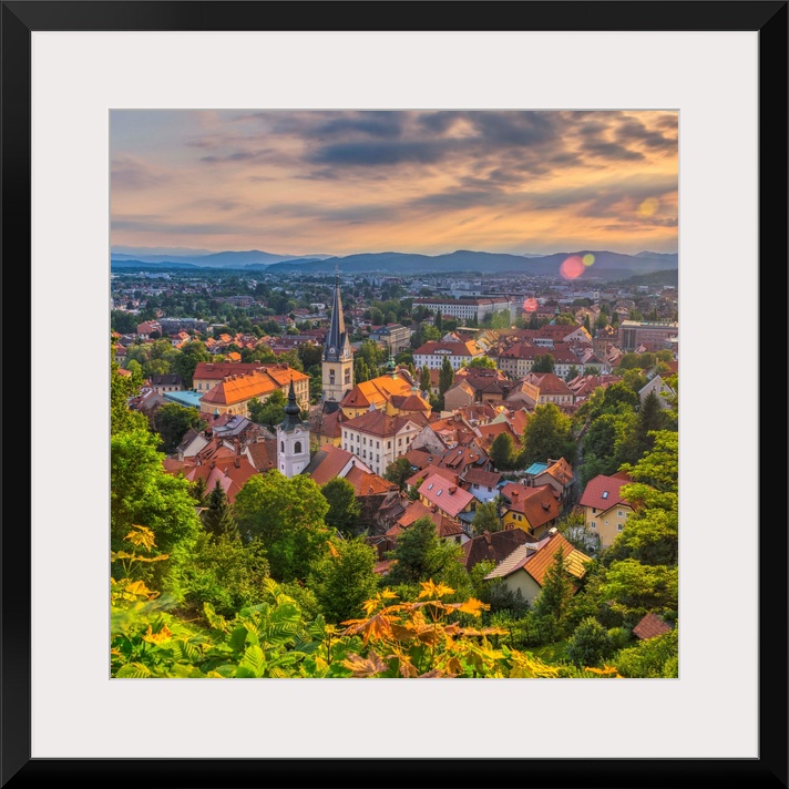 <p>Slovenia, Ljubljana, Sveti Florijana (or Sentflorjanska) Cerkev and Sveti Jakoba Cerkev beyond (Saint Florian and Saint Jakob Churches)</p>