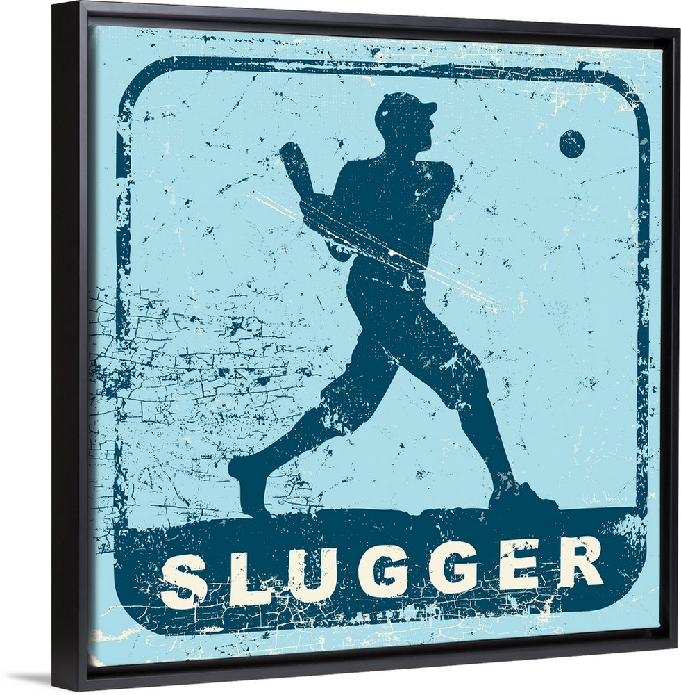 <p>Distressed retro logo image of a baseball player swinging a baseball bat.</p>