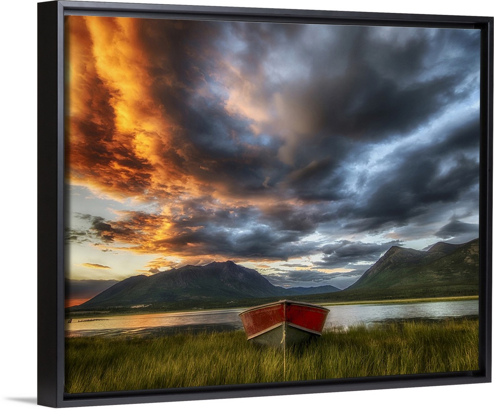 <p>Small boat with moody sky, Carcross, Yukon, Canada.</p>