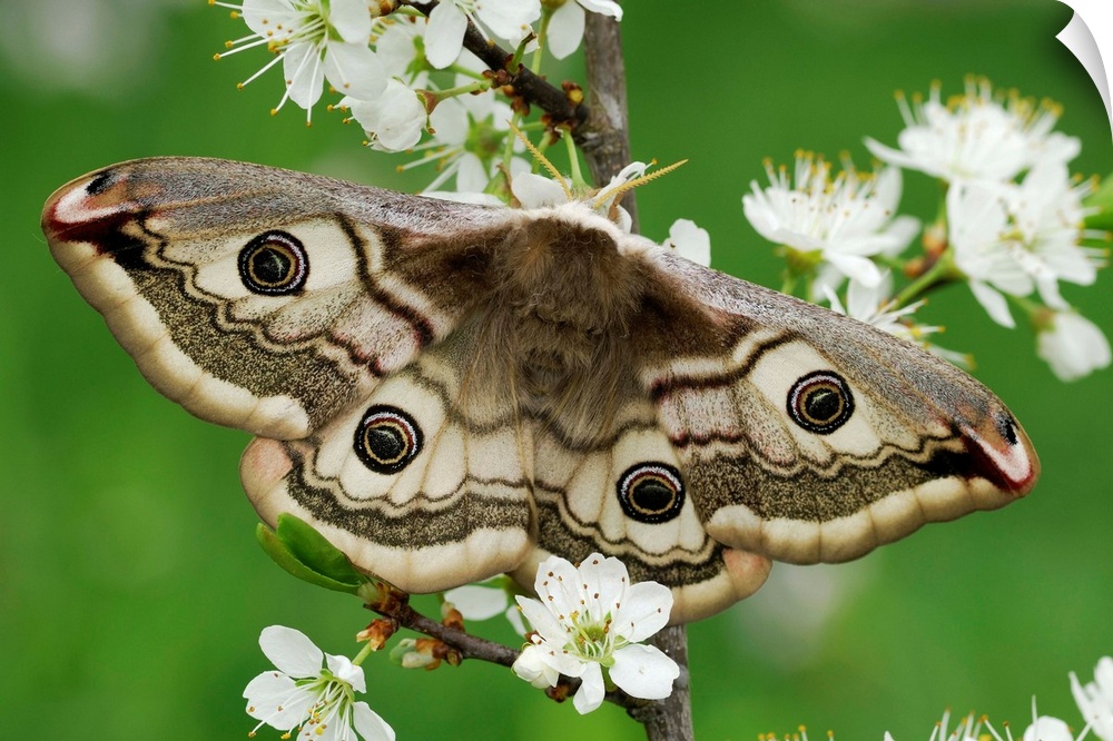 <p>Emperor Moth - female - on blackthorn - Switzerland</p>