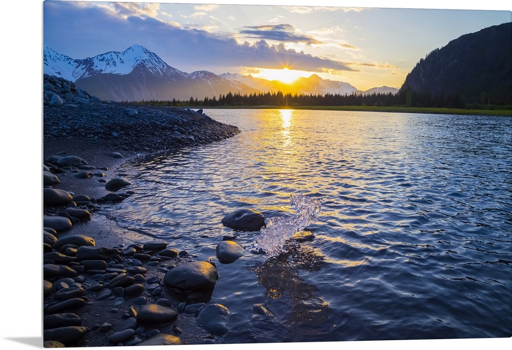 <p>A Small Piece Of Ice, The Remnants Of An Iceberg Calved From The Face Of Bear Glacier, Melts In The Sunset Near Bear Glacier Lagoon In Kenai Fjords National Park; Alaska, United States Of America</p>