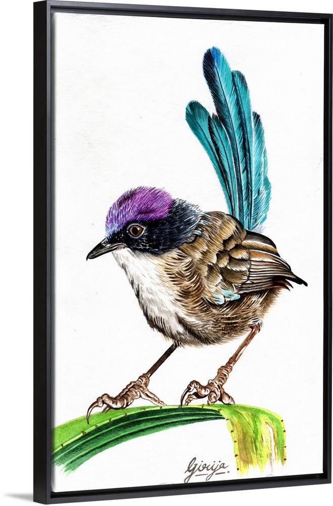 <p>The purple-crowned fairywren is a species of bird in the Australasian wren family, during the breeding season; adult males develop the spectacular bright purple feathers on their crown. This small bird is painted in watercolor on paper.</p>