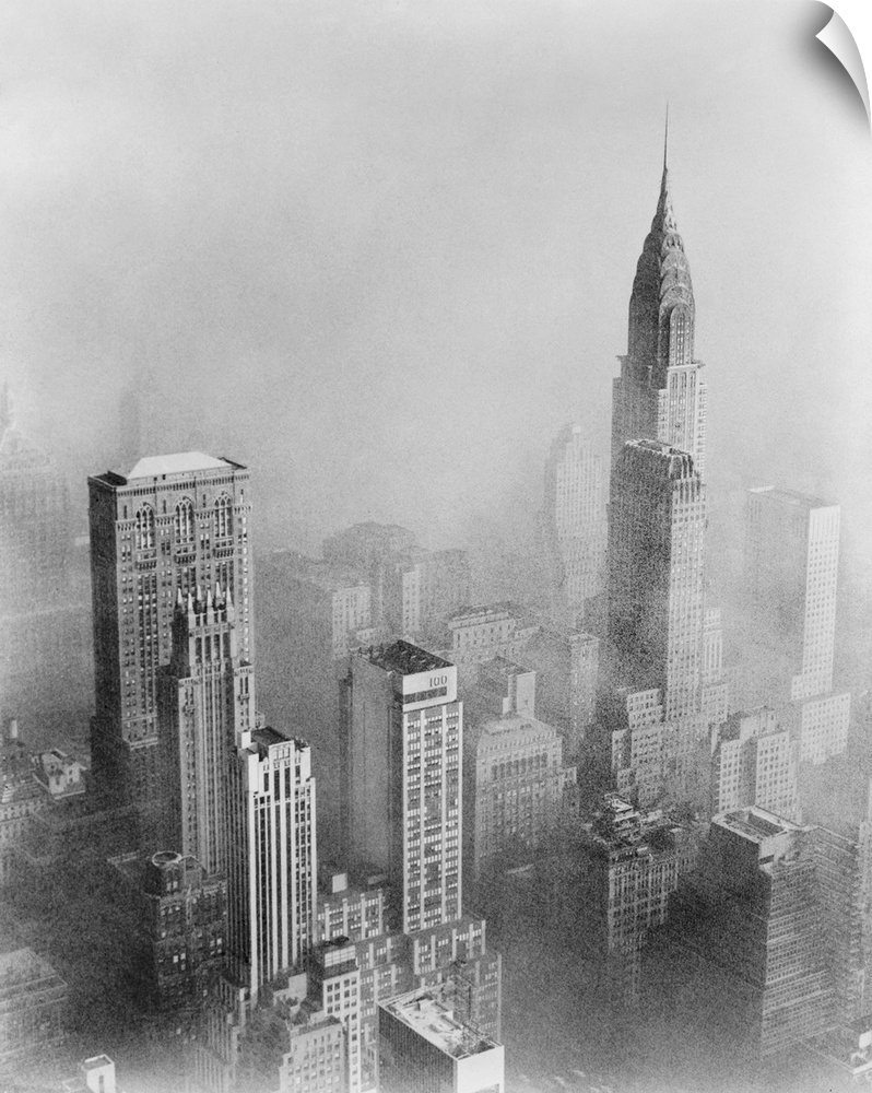 <p>Smog and New York skyscrapers, 1950s. Smog obscuring the view of the Chrysler Building (right) from the Empire State Building, New York City, USA. The Chrysler Building (1930, 319 metres) was the world's tallest building for 11 months before being surpassed by the Empire State Building (1931, 443 metres). Photographed on 20 November 1953 by Walter Albertin.</p>