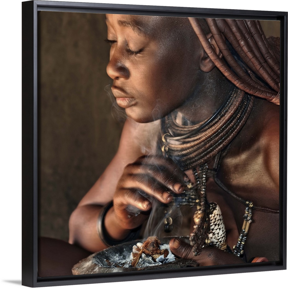<p>An African tribeswoman baths herself in smoke from various herbs.</p>