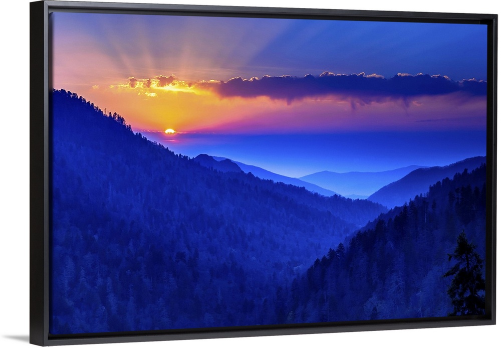 <p>Warm rays of sunlight illuminating the deep blue sky over the Blue Ridge Mountains.</p>